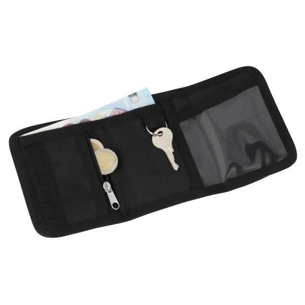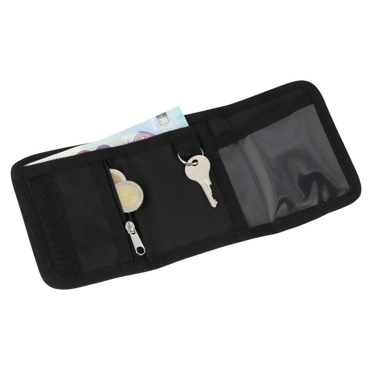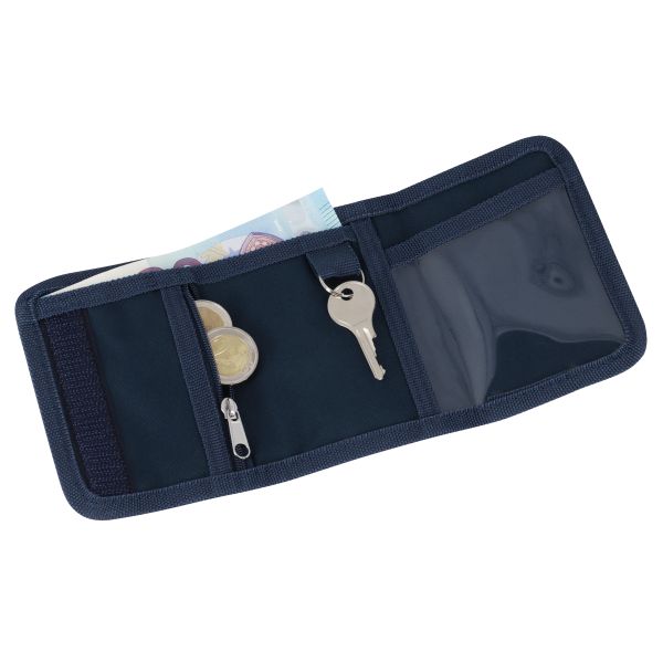 Kernvorteile | Geldbörse mit Klettverschluss; Geldscheinfach; Schlüsselring; Reißverschlussfach innen; abgerundete Ecken; perfekter Begleiter für Schule oder Freizeit, Maße: 11,5 x 8 x 2 cm; Material: Polyester, Motive: CamoBlue, CamoGrey, Blossom, Desert |