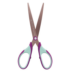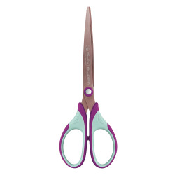 Stahl / Kunststoff ergonomischer Griffbereich durch Materialmix aus Kunststoff und Gummi Scherenblätterfarbe angelehnt an die Scherenfarbe Scherenfarbe Lila/Minze 1 Stück auf Rivet-Karte Titannitrid Beschichtung |