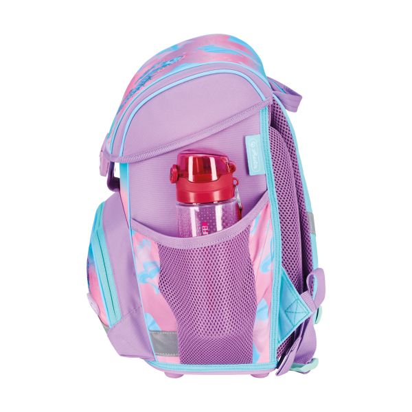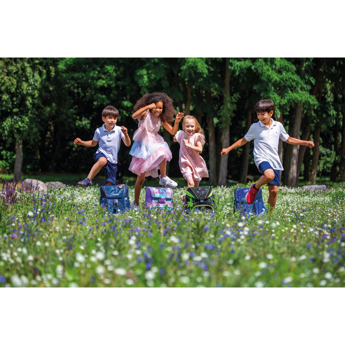 Kernvorteile | Eigengewicht unter 900g; ergonomisch geformte Rückenpolster; verstellbare Schultergurte; höhenverstellbarer Brustgurt; angenehme Passform; Orafol Reflexmaterialien; Klickschloss mit Reflektor; geräumiges Innenfach mit separatem Bücherfach; 1 Fronttasche; 2 Seitentaschen mit Gummizug; stabile Bodenplatte; Befüllteile: Sportbeutel; Schüleretui unbefüllt mit 2 Klappen; Faulenzer oval; Maße: 37x31x22cm; Gewicht: unter 900g; Volumen: ca. 17l; Material: Polyester |