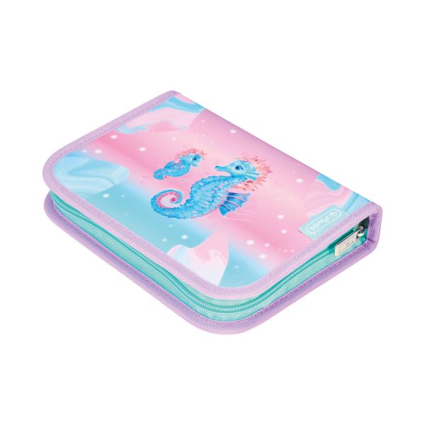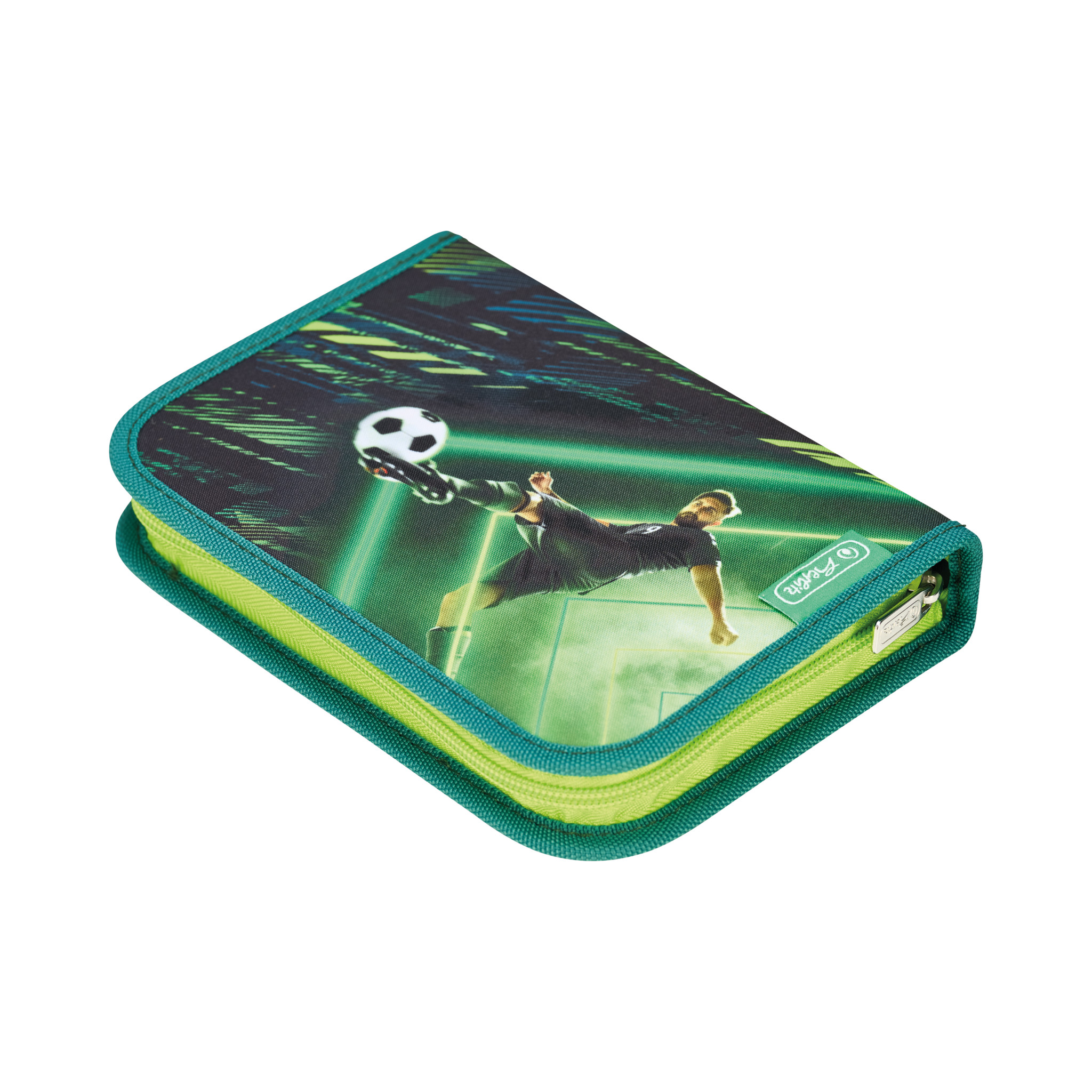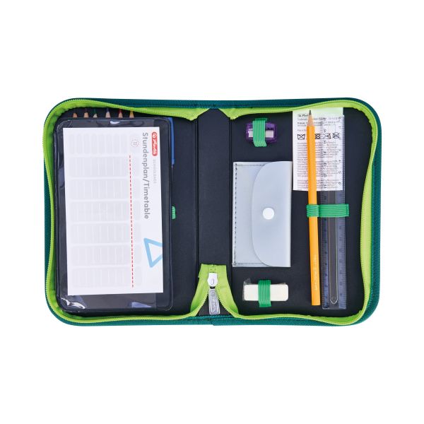| Kernvorteile | Für Schule; Etui mit 1 Klappe; mit farbigem Reißverschluss; Schlaufen in unterschiedlichen Größen; guter Überblick, farbiges Innenmaterial farbig passend zum Motiv; farbige Stifteschlaufen; Maße: 20,5 x 14 x 3,5 cm; Material: Polyester; Befüllung: mit FSC zertifizierten Bunt- und Bleistiften, Fasermaler; 4 Motive: Ocean Lights, Game Changer, Lucky Horse, Cosmic Explorer |