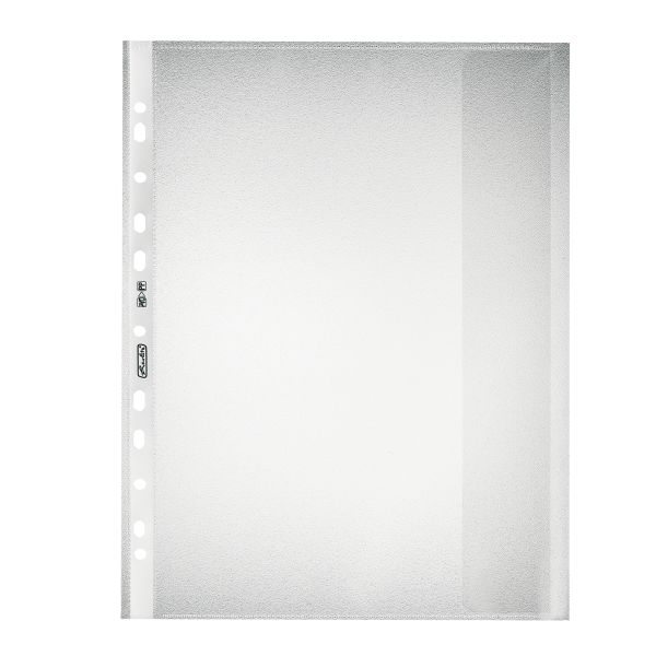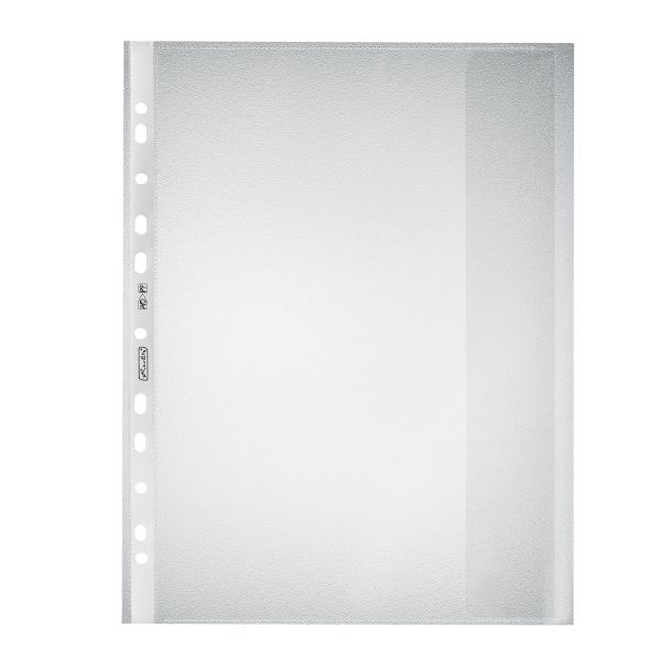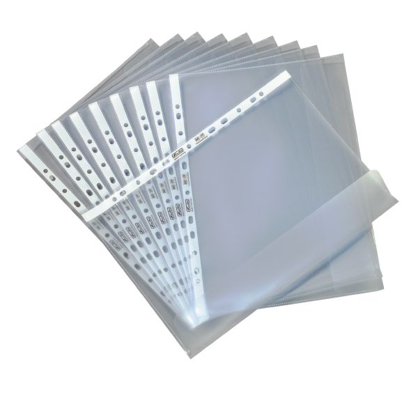 PP-Folie genarbt, dokumentenecht seitlich offen mit Überschlaglasche Lochrandverstärkung, Eurolochung transparent 10 Stück, eingeschweißt |
