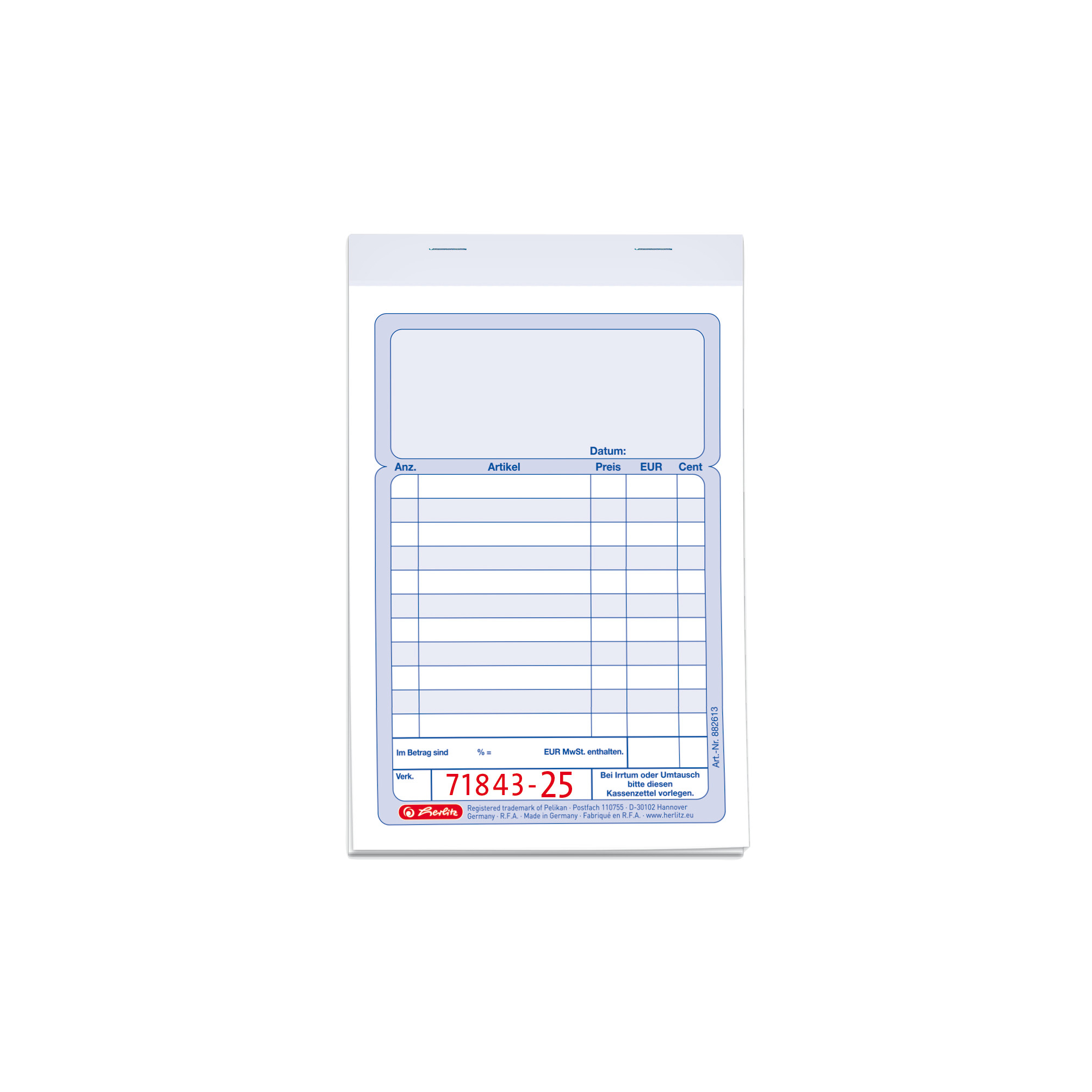 Artikelbeschreibung | Kassenblock A6 2x50 Blatt |