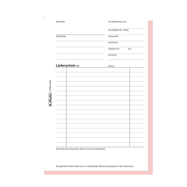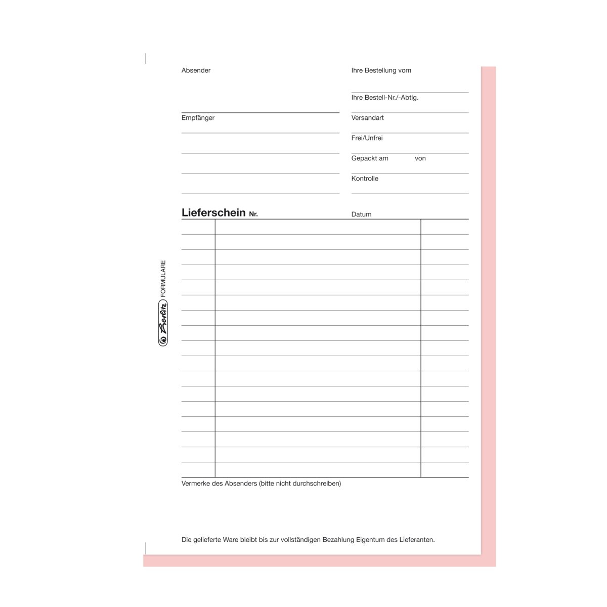 | holzfreies Papier 2 x 50 Blatt Liefer- u. Empfangsscheinformulare mit Kohlepapier perforiert, gelocht 1.Bl. weiß, 2.Bl. rosa 1 Stück |