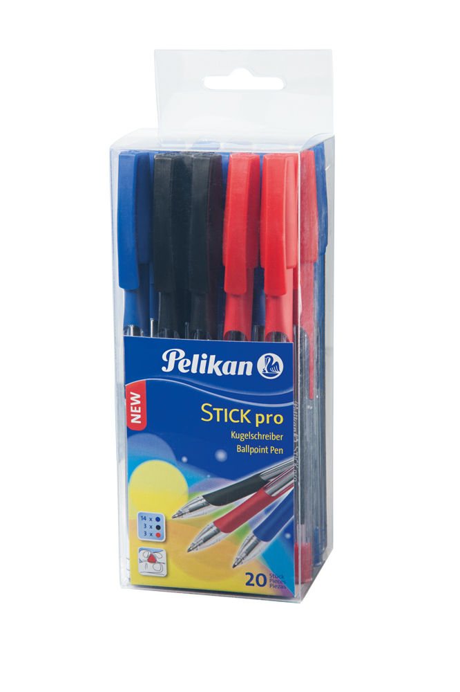 - 913038 - Pelikan Kugelschreiber Stick Pro 1 Box mit 20 Stück, Schwarz/Blau/Rot sortiert (Einzelabbildung)