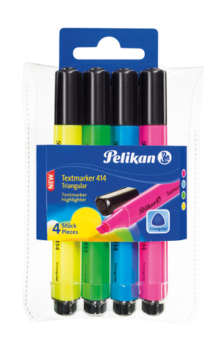 - 985689 - Pelikan Textmarker 414 Triangular Etui mit 4 Stück, sortiert, Gelb, Grün, Orange, Blau (Einzelabbildung)