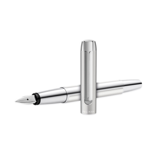 Füllhalter Pura P40 Silber, offen dynamisch, Kappe aufgestellt