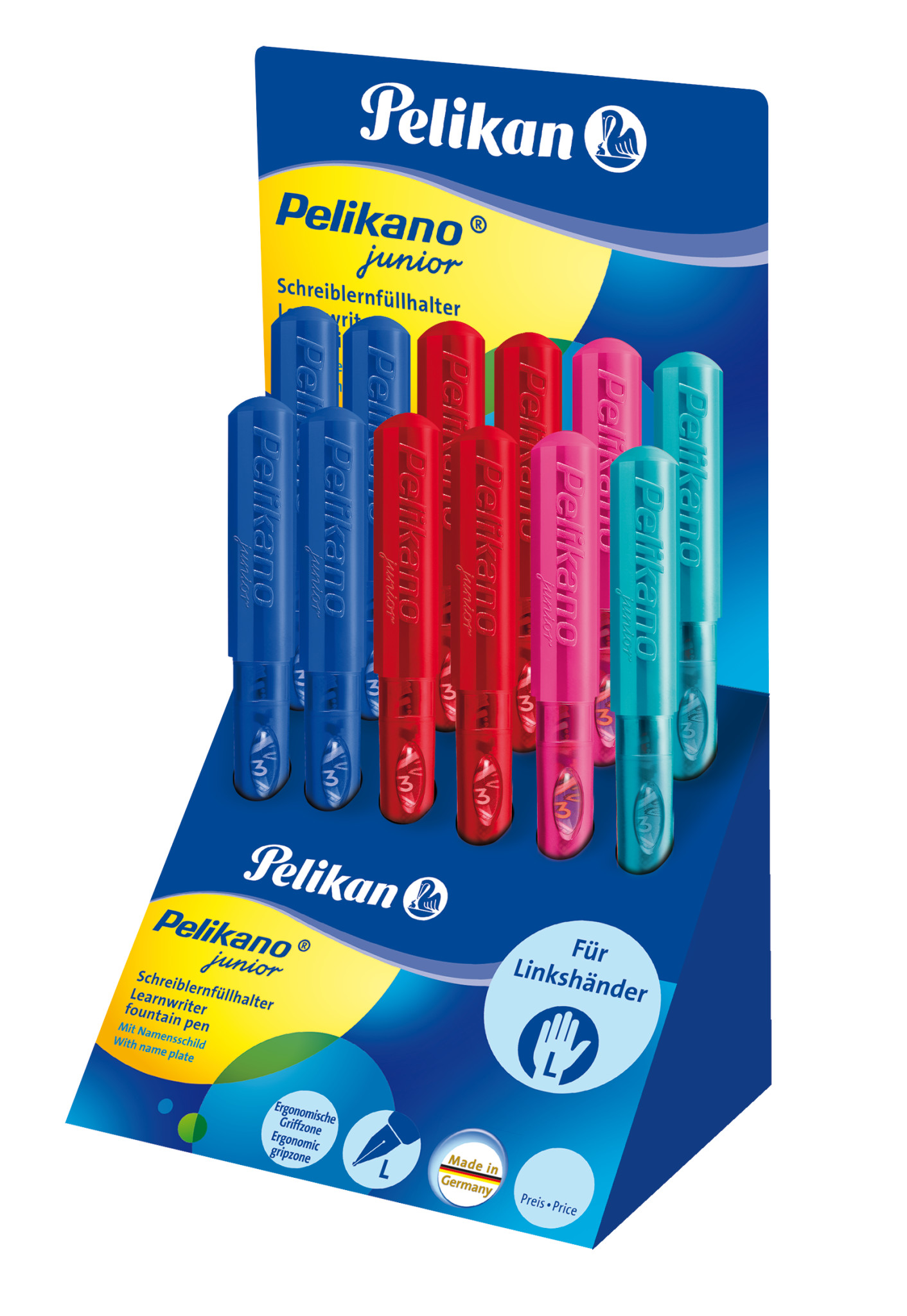 Füllhalter Pelikano junior farbig sortiert, Rechtshänder, Keildisplay