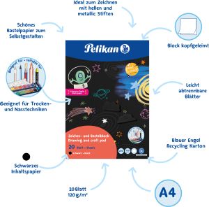 | Pelikan Zeichen- und Bastelblock A4, 120g/m², 20 Blatt, Schwarz, Blauer Engel | |
