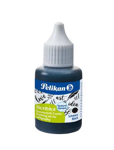 In dem praktischen Kunststoffbehälter sind 30 ml Pelikan Tusche enthalten. Mit der Spitzdüse kann diese einfach dosiert werden.