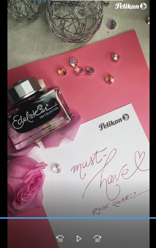 Als Teil der eigenen DNA ist Pelikan seit über 185 Jahren Experte in der Entwicklung hochwertiger Tintenrezepturen. Mit der Edelstein Ink Collection hat Pelikan einen hohen Maßstab in der Tintenentwicklung gesetzt.In ihrer Farbvielfalt aus der Welt der Edelsteine inspiriert ist, bietet zum einen sehr ansprechende Schreibfarben und dazu auch noch ein besonders weiches Schreibgefühl durch einen speziellen Zusatz in der Rezeptur. Der edle Flakon ist an das Design eines Parfümflakons angelehnt und steht für sich als hochwertige Ikone. Mit dieser außergewöhnlichen Tinte fliegen Ihre Gedanken edel und ganz weich auf das Papier. Die Edelstein Ink of the year Rose Quartz ist eine sehr romantischer Farbton, perfekt für eine emotionale, handgeschriebene Nachricht. Fein abgestimmt auf die Farbrange des natürlichen Edelsteins zwischen intensivem Rosa und softem Pink lässt diese Tintenfarbe jede Botschaft das Herz zum Schmelzen bringen.
