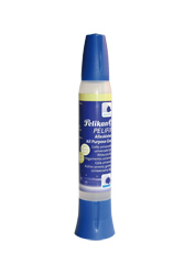 Innovativer Alleskleber mit 2 Spitzen: schmal oder breit für punktgenauen oder flächigen Auftrag. 30g, lösungsmittelfrei. Klebt Holz , Glas, Pappe, Papier, Kork und Styropor. Passt perfekt ins Schüleretui.