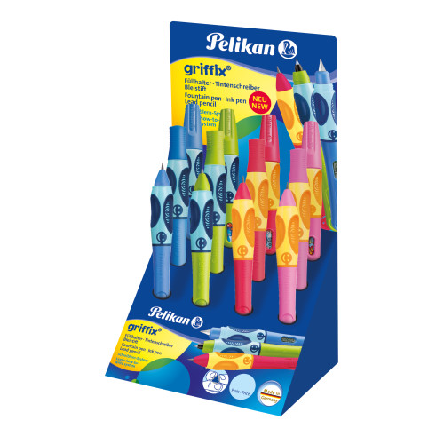 Pelikan griffix, Display für Rechtshänder, 12 Stück farblich sortiert mit je 4 Füllhaltern, 4 Tintenschreibern und 4 Bleistiften | |