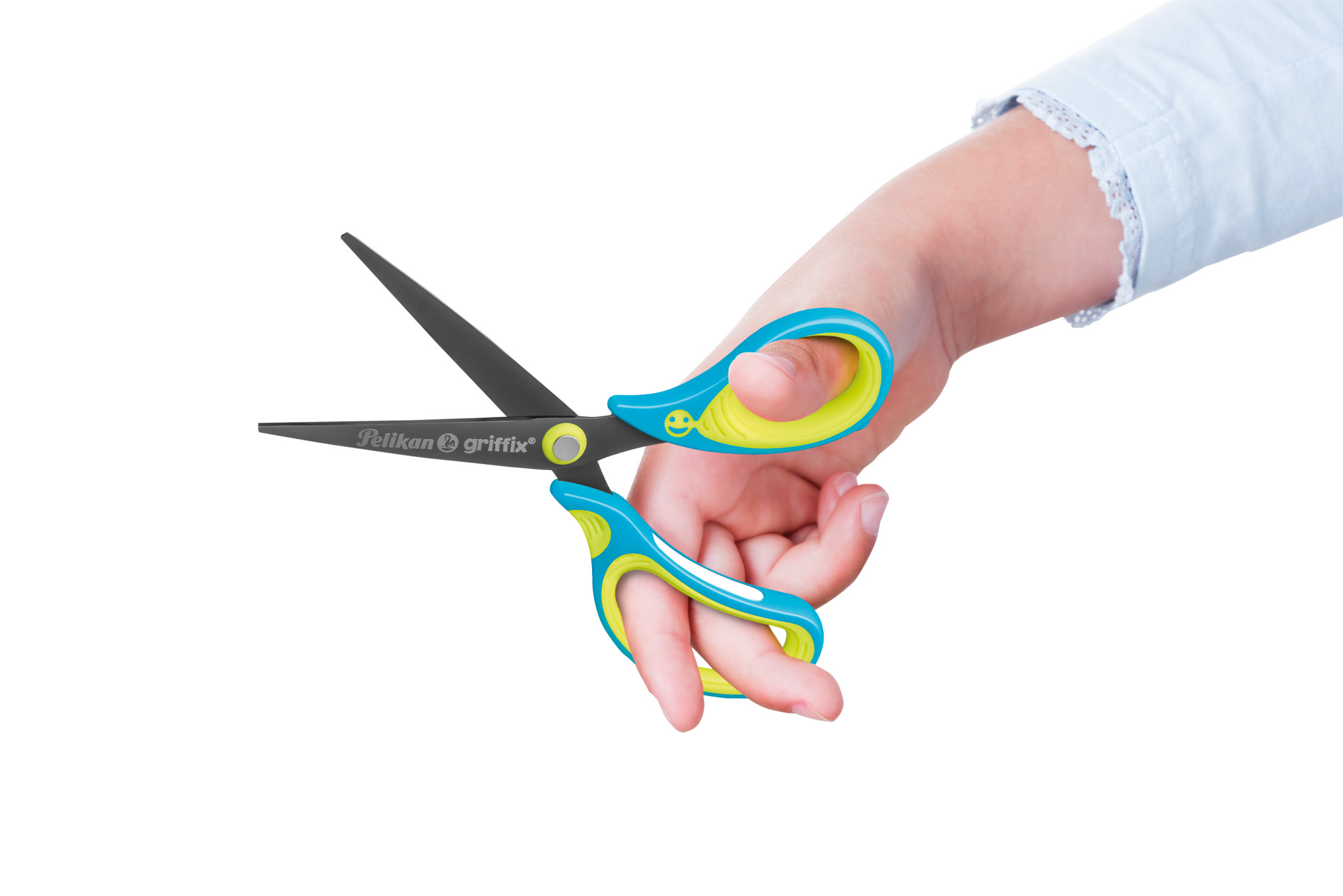 Die Klinge der Pelikan griffix Schulschere ist 3x härter als Stahl durch eine Titan-Nitrid-Beschichtung. Die spitze Klinge eignet sich besonders gut für kleinere, filigrane Schneid-Arbeiten. Der ergonomische Griff besteht aus hartem und weichem, hochwertigen Kunststoff und ist PVC- und Latex-frei. Wie beim beliebten griffix Schreiblernsystem sorgt das lachende Griffix Gesicht für die richtige Handhaltung. Mit Namensfeld. | |