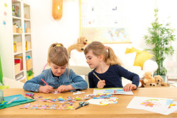 Tonzeichenpapier, griffix Anspitzer, Buntstifte und Schere spitz, Klebestift PELIFIX, Kinder spielen
