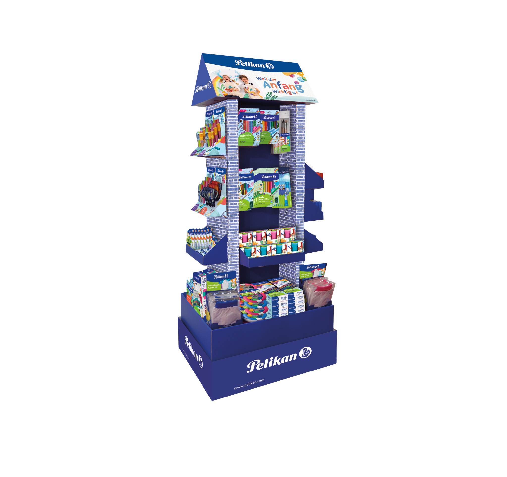 POS-Display, befüllt aus Pappe, Motiv bedruckt Größe (B x H x T): 80 x 185 x 60 cm Inhalt: 546 Stück Schulbedarfsartikel Sortimente Schreiben, Malen und Basteln |