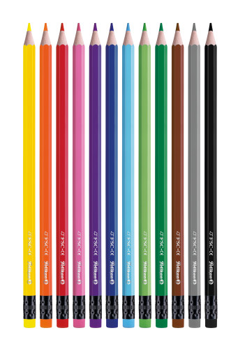 12 Buntstifte mit Radierer in Malfarbe an jedem Stift, dünn, hexagonal, Qualitäts-Mine 3mm, FSC 100%, mit bruchstabiler Mine | |