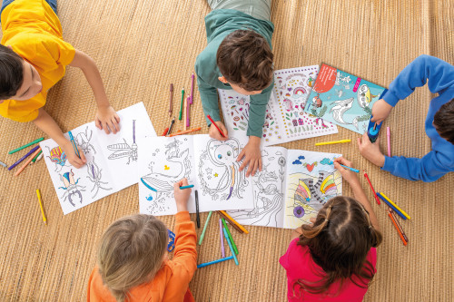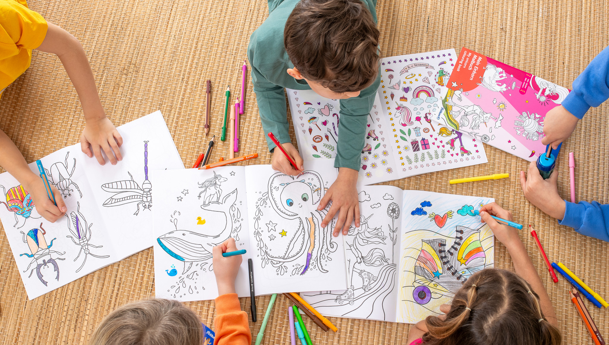 Malbücher, griffix Anspitzer und Buntstifte, Colorella Fasermaler, Kinder von oben rechteckig weit 2