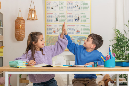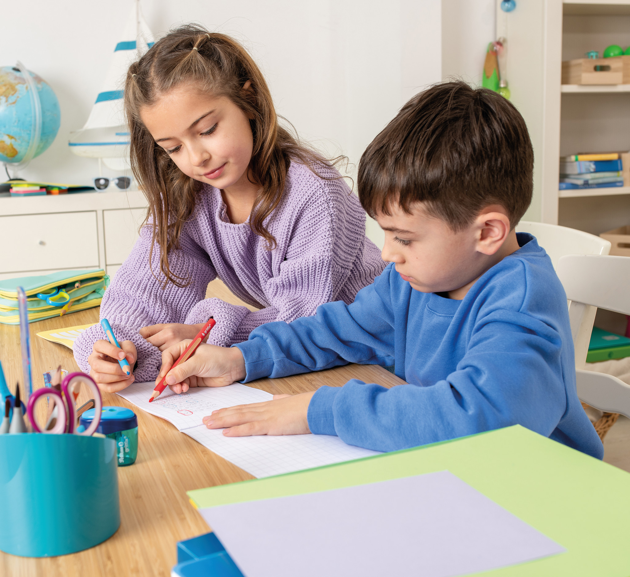 Tonzeichenpapier, griffix Anspitzer, Buntstifte und Schere spitz, Klebestift PELIFIX, Kinder spielen