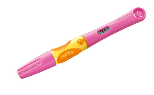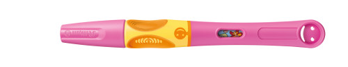 Der Füller ist die 4. Stufe des vierstufigen griffix® Schreiblernsystems - die Königsklasse beim Schreibenlernen. Mit dem Füller lernen die Kinder das formgerechte Schreiben und optimieren die flüssigen Schreibbewegungen. Die druckstabile Edelstahlfeder für Schreibanfänger gleitet dabei leicht über das Papier und hinterlässt ein schönes und sauberes Schriftbild. Das große Tintensichtfenster des Füllerhalters bietet optimale Kontrolle des Tintenstandes. Das ergonomische Design der griffix® Schreibgeräte fördert die richtige Handhaltung für natürliches und lockeres Schreiben in jeder Lernphase, denn alle Stifte – vom Wachsschreiber über den Bleistift und Tintenroller bis hin zum Schulfüller - sind optimal auf die individuelle Lernstufe des Kindes angepasst. Dank des einheitlichen Griffmulden-Konzepts (Zangengriff) muss das Kind bei dem aufeinander aufbauenden Schreiblernsystem die Handhaltung von Stufe zu Stufe nicht mehr ändern. Das Gute-Laune-Gesicht zeigt, dass der Stift richtig gehalten wird. griffix® unterstützt die Kinderhand damit optimal im gesamten Schreiblern-Prozess - von Anfang an. Mit griffix® macht das Schreibenlernen Spaß. |