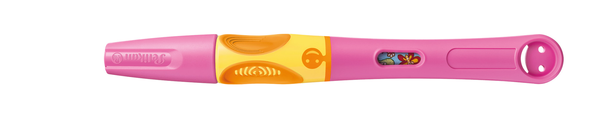 | Der Füller ist die 4. Stufe des vierstufigen griffix® Schreiblernsystems - die Königsklasse beim Schreibenlernen. Mit dem Füller lernen die Kinder das formgerechte Schreiben und optimieren die flüssigen Schreibbewegungen. Die druckstabile Edelstahlfeder für Schreibanfänger gleitet dabei leicht über das Papier und hinterlässt ein schönes und sauberes Schriftbild. Das große Tintensichtfenster des Füllerhalters bietet optimale Kontrolle des Tintenstandes. Das ergonomische Design der griffix® Schreibgeräte fördert die richtige Handhaltung für natürliches und lockeres Schreiben in jeder Lernphase, denn alle Stifte – vom Wachsschreiber über den Bleistift und Tintenroller bis hin zum Schulfüller - sind optimal auf die individuelle Lernstufe des Kindes angepasst. Dank des einheitlichen Griffmulden-Konzepts (Zangengriff) muss das Kind bei dem aufeinander aufbauenden Schreiblernsystem die Handhaltung von Stufe zu Stufe nicht mehr ändern. Das Gute-Laune-Gesicht zeigt, dass der Stift richtig gehalten wird. griffix® unterstützt die Kinderhand damit optimal im gesamten Schreiblern-Prozess - von Anfang an. Mit griffix® macht das Schreibenlernen Spaß. |
