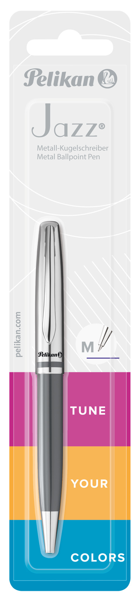 Der elegante Jazz Metall-Kugelschreiber zeichnet sich durch seine schwungvolle Linienführung aus, die leicht und lebendig wirkt. Das glänzend lackierte Unterteil harmoniert perfekt mit dem verchromten Oberteil, in das der Pelikan-typische Schnabelclip eingelassen ist. Der Clip ist federnd gelagert und dadurch besonders robust. Der Dreh-Kugelschreiber ist ausgestattet mit einer Großraummine mit nach ISO 12757-2 dokumentenechter Paste in der Schreibfarbe Blau. | |
