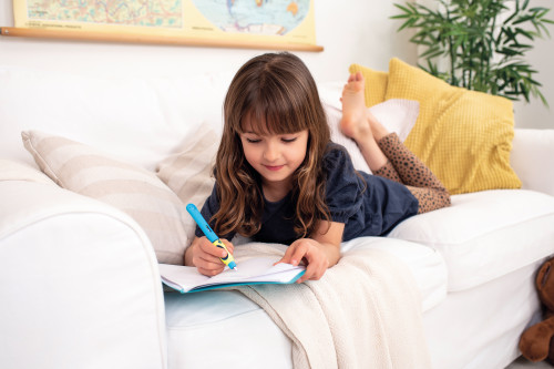 Der Füller ist die 4. Stufe des vierstufigen griffix® Schreiblernsystems - die Königsklasse beim Schreibenlernen. Mit dem Füller lernen die Kinder das formgerechte Schreiben und optimieren die flüssigen Schreibbewegungen. Die druckstabile Edelstahlfeder für Schreibanfänger gleitet dabei leicht über das Papier und hinterlässt ein schönes und sauberes Schriftbild. Das große Tintensichtfenster des Füllerhalters bietet optimale Kontrolle des Tintenstandes. Das ergonomische Design der griffix® Schreibgeräte fördert die richtige Handhaltung für natürliches und lockeres Schreiben in jeder Lernphase, denn alle Stifte – vom Wachsschreiber über den Bleistift und Tintenroller bis hin zum Schulfüller - sind optimal auf die individuelle Lernstufe des Kindes angepasst. Dank des einheitlichen Griffmulden-Konzepts (Zangengriff) muss das Kind bei dem aufeinander aufbauenden Schreiblernsystem die Handhaltung von Stufe zu Stufe nicht mehr ändern. Das Gute-Laune-Gesicht zeigt, dass der Stift richtig gehalten wird. griffix® unterstützt die Kinderhand damit optimal im gesamten Schreiblern-Prozess - von Anfang an. Mit griffix® macht das Schreibenlernen Spaß. |