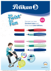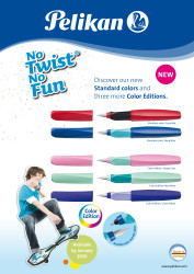 Der Pelikan Füller Twist ist das Trendschreibgerät für junge Leute aus dem Traditionshaus Pelikan. Durch seinen gedrehten Look und die trendige Farbkombination Fiery Red ist der Füller ein echter Hingucker in jeder Federtasche. Ob fancy oder eher klassisch, den Pelikan Twist gibt es für jeden Geschmack garantiert in der passenden Farbkombination. Aufgrund ihrer einzigartig gedrehten Form und ihres ergonomischen Griffprofils liegen die Twist Füllhalter auch bei längerem Schreiben perfekt in der Hand – und das bei Links- und Rechtshändern gleichermaßen. Dem Twist Füller liegt standardmäßig eine königsblaue Pelikan Tintenpatrone mit löschbarer Tinte bei. Diese Tinte lässt sich bei kleinen Schreibfehlern problemlos durch einen Tintenlöscher von Pelikan rückgängig machen. Durch die mittlere Edelstahlfeder gleitet der Pelikan Füllhalter sanft über die Oberfläche und bringt jeden Gedanken spielend leicht aufs Papier. Qualität made in Germany. |