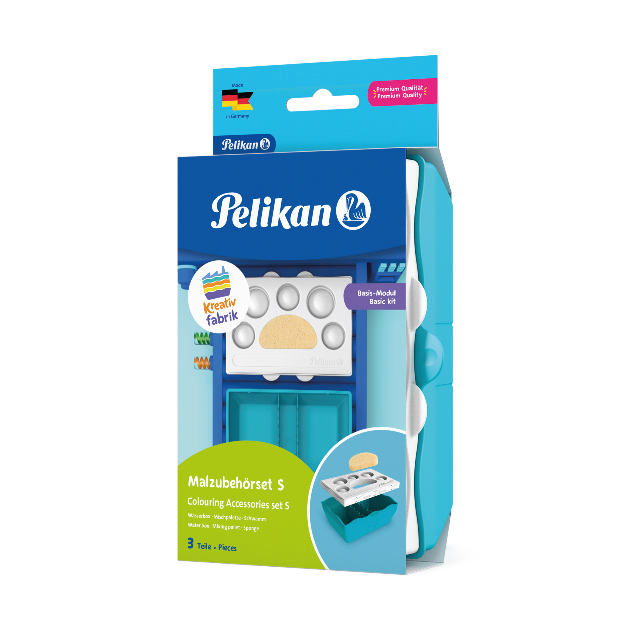 | Kernvorteile | Kleines Basisset der Pelikan Kreativfabrik; Dreifachgeteilte Wasserbox; Mit praktischer Mischpalette und Schwamm; Mit Pinselablage; Stabil und Kippsicher; Für Schule und Freizeit; Beliebig erweiterbar mit den Kreativ-Etagen der Pelikan Kreativfabrik; Inkl. Stickerbogen zum Indivisualisieren und für die Namenbeschriftung; Made in Germany |
