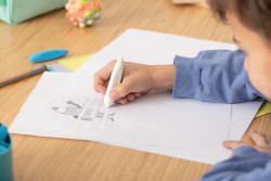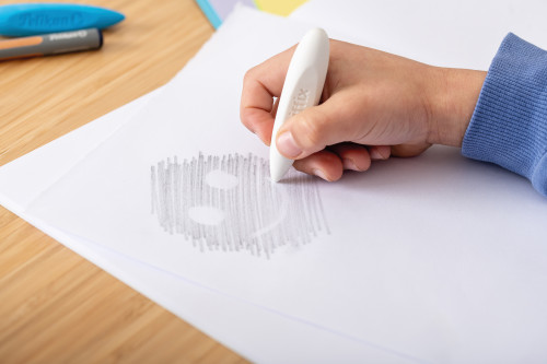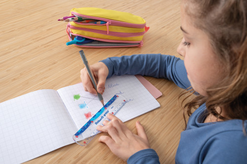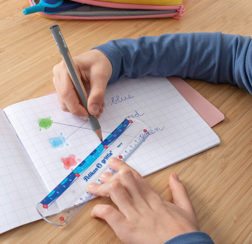 griffix Lineal, Radierer, Anspitzer im Focus, Buntstifte, Bleistifte, Schere spitz, Hände rechteckig