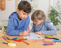 griffix Wachsmaler, Buntstifte, Anspitzer, Bleistifte, Pinsel, Schwamm, Malbuch, Junge Mädchen malen