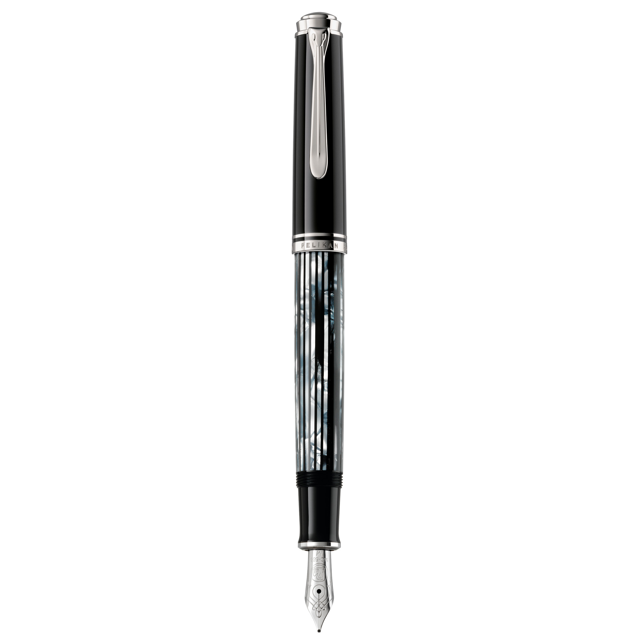 Souverän ist der Klassiker von Pelikan. Die Produktion des Schildpatt-Mantels unterliegt einem aufwendigen Prozess, denn nach einer eigens für Pelikan entwickelten Rezeptur wird aus Baumwoll-Material in vielen Schritten ein gestreiftes Materialstück gefertigt, welches gebogen und anschließend mit einem Diamanten auf Kontur geschliffen wird. Die Besonderheit des Schildpatt-Materials liegt dabei in der leichten Material-Transparenz und in den verschiedenen Farbnuancen, die dem Material seinen schimmernden Effekt verleihen. Die palladinierten Ringe an Füllgriff und Kappe werden mit höchster Präzision eingepasst, bevor das Schreibgerät auf Hochglanz poliert wird. Der leicht federnde, typische Pelikan Schnabelclip verleiht diesem hochwertigen Schreibgerät sein unverwechselbares Design. Der Kolbenfüllhalter Souverän M605 verfügt über eine 14-Karat rhodinierte Goldfeder und ist in den Federbreiten EF, F, M und B erhältlich. Die EF-Feder sorgt für ein extra-feines Schriftbild und ist besonders für Handschriften mit kleinen Schwüngen geeignet. |