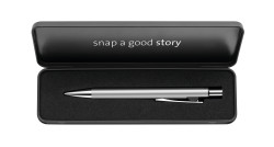 Der Snap®-Kugelschreiber zeichnet sich durch seine formal klare Formsprache aus, die für Menschen mit einer Vorliebe für puristisch minimalistische Ästhetik gemacht ist. Dieser Designansatz wird mit einer perlmuttartigen Lackierung kombiniert, die den hochwertigen Gesamteindruck unterstreicht. Namensgebend für den Kugelschreiber mit Druckmechanik ist sein Clip. Beim Ausfahren der Mine schnappt er in die Drückermechanik ein. Durch Druck auf den oberen Teil des Clips wird die Mechanik entriegelt und die Mine eingefahren. Der Snap®-Kugelschreiber ist größtenteils aus recyclefähigem Metall gefertigt. Sowohl der Drücker als auch der Aluminium-Schaft sind zylindrisch geformt. Diese Form geht in die konische Messing-Spitze über. Die im Vergleich zu Aluminium schwere Messing-Spitze sorgt dafür, dass der Schwerpunkt zur Spitze verlagert wird, wodurch ergonomisch optimiertes Schreiben möglich wird. Das Gerät ist ausgestattet mit einer auswechselbaren Großraummine mit weicher Spitze (Größe M) und einer blauen, nach ISO 12757-2 dokumentenechten, Paste. Während Drücker, Clip und Spitze glänzend verchromt sind, ist der Aluminium-Schaft perlmuttartig lackiert. Dadurch erhält das Gerät seine metallisch-schimmernde Optik, die es in den Farben Silber, Platin, Gold, Rose-Gold, Kupfer und Frostblau gibt. |