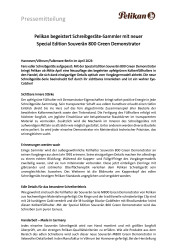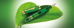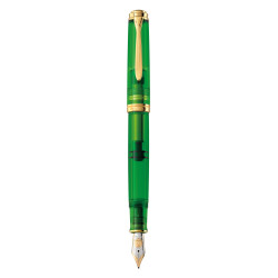 Souverän ist der Klassiker von Pelikan. Das grün-transparente Gehäuse wird in einer Reihe von Produktionsschritten aus hochwertigem Edelharz gefertigt und anschließend mit einem Diamanten auf Kontur geschliffen. Die einteiligen Kappen- und Füllgriffringe, mit glänzender und satinierter Oberfläche, verleihen diesem Füllhalter eine außergewöhnliche Optik. Die grün-transparenten Komponenten geben den Blick auf den Kolbenmechanismus und den Tintenstand frei. Der leicht federnde, typische Pelikan Schnabelclip verleiht diesem hochwertigen Schreibgerät sein unverwechselbares Design. Der Kolbenfüllhalter Souverän M800 verfügt über eine 18-Karat Bicolor-Goldfeder und ist in den Federbreiten EF, F, M und B erhältlich. Die EF-Feder sorgt für ein extra-feines Schriftbild und ist besonders für Handschriften mit kleinen Schwüngen geeignet. |
