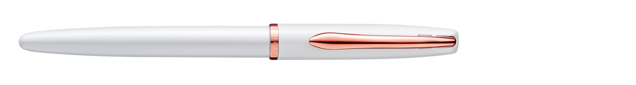 Kernvorteile | Perlmutt-schimmernd lackiertes Ober- und Unterteil; Clip, Ring und Spitze farblich veredelt; Robuster Clip durch federnd gelagerte Anbringung; Metall-Füllhalter mit Patronenfüllsystem; Polierte Edelstahlfeder in mittlerer Strichstärke; Ausgestattet mit einer Pelikan Großraum-Tintenpatrone; Blaue Füllhaltertinte; Metall-Kugelschreiber mit Drehmechanik; Ausgestattet mit wechselbarer Großraum-Mine; Blaue, nach ISO 12757-2 dokumentenechte Paste |