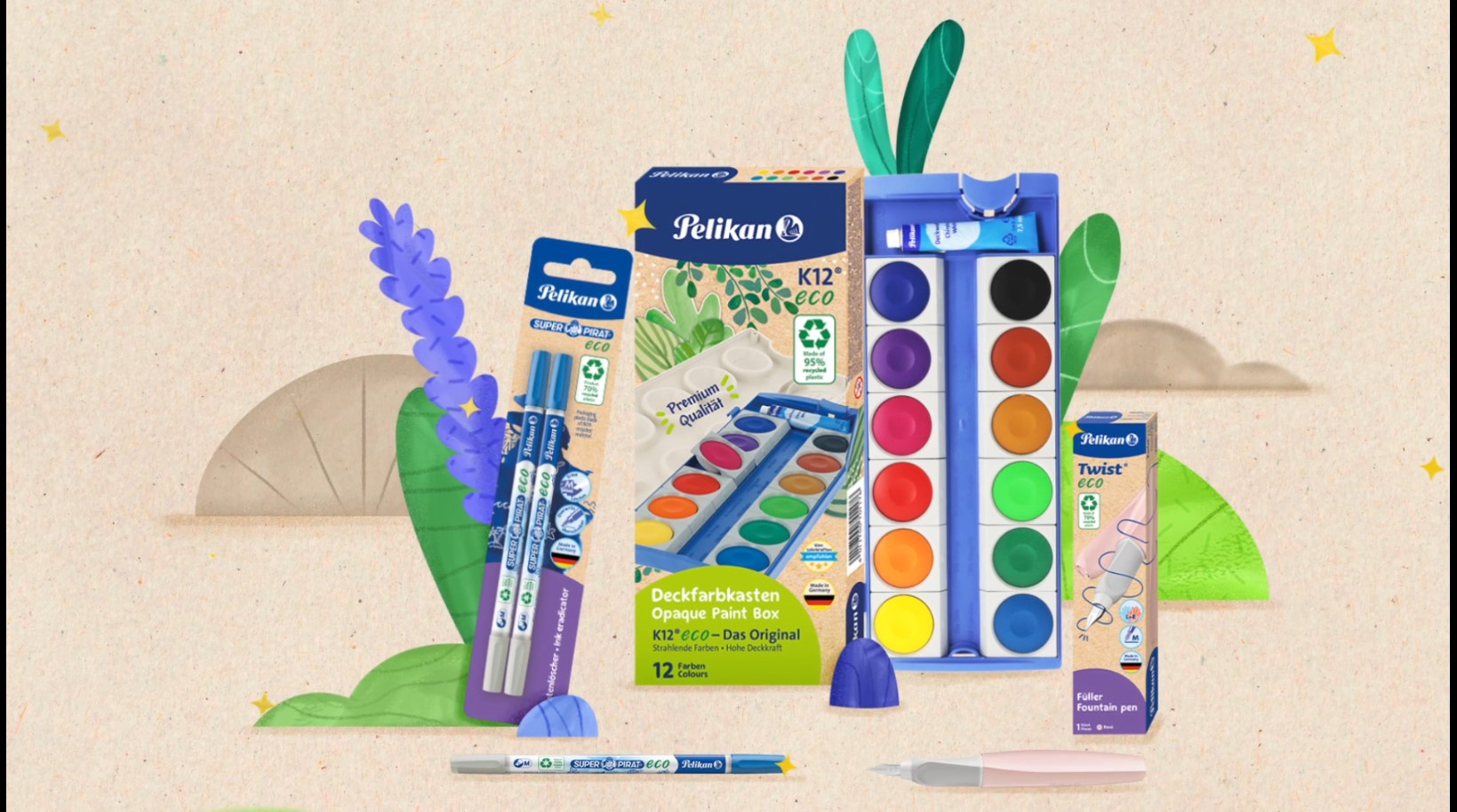 Der Pelikan Füller Twist eco ist das Trendschreibgerät für junge Leute aus dem Traditionshaus Pelikan. Durch seinen gedrehten Look und die trendigen Farbkombinationen ist der Füller ein echter Hingucker in jeder Federtasche. Die Twist Füllhalter und Roller bestechen durch ihr trendiges Design. Damit die Nutzer auch beim Schreiben strahlen können, greift der Twist die Farbtrends aus dem Fashion- und Lifestylebereich auf. Ob fancy oder eher klassisch, den Pelikan Twist gibt es für jeden Geschmack garantiert in der passenden Farbkombination. Aufgrund ihrer einzigartig gedrehten Form und ihres ergonomischen Griffprofils liegen die Twist Schreibgeräte auch bei längerem Schreiben perfekt in der Hand – und das bei Links- und Rechtshändern gleichermaßen. Dem Twist Füller liegt standardmäßig eine königsblaue Pelikan Tintenpatrone mit löschbarer Tinte bei. Diese Tinte lässt sich bei kleinen Schreibfehlern problemlos durch einen Tintenlöscher von Pelikan rückgängig machen. Alle Twist Trendschreibgeräte mit ihrem gedrehten Look und ihrer ergonomischen Form werden in Deutschland gefertigt. Qualität made in Germany – Made by Pelikan. Durch die Edelstahl-Feder gleitet der Pelikan Füllhalter sanft über die Oberfläche und bringt jeden Gedanken spielend leicht aufs Papier. Darüber hinaus sorgt die sanfte Feder für kratzfreies Schreiben und verhindert das Auslaufen der Tinte. Der Twist eco Füller blue kommt in einer passenden Faltschachtel mit einer königsblauen Großraum-Tintenpatronen inklusive. Die Twist eco Schreibgeräte werden zu 78% aus recyceltem Kunstoff hergestellt und die Faltschachteln bestehen aus nachhaltig bewirtschafteten Rohstoffen, welche aus FSC-zertifizierten Quellen stammen. |