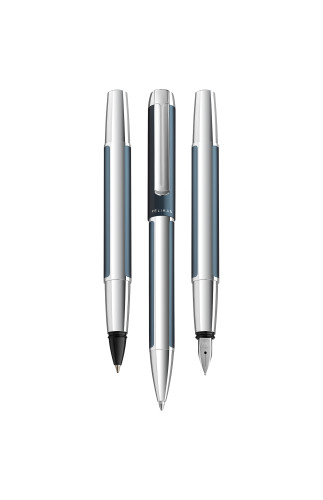 Gradlinig. Schnörkellos. Pur. So unverkennbar zeigt sich der Pura von der Kappe bis zum Schaft. Die ausgewogene Kombination aus matten und glänzenden Oberflächen veredelt das Schreibgerät aus Aluminium zu einer zurückhaltend eleganten Silhouette. Der solide, federnd gelagerte Silberclip auf der Kappe unterstreicht elegant die Linienführung. Der Kugelschreiber mit Drehmechanismus ist ausgestattet mit einer internationalen Großraummine mit nach DIN ISO 12757-2 dokumentenechten Paste in Schwarz | |