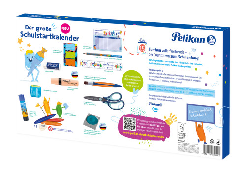 | NEU: Der Kalender für den Schulstart. Der große Countdown zum Schulbeginn! 15 Faltschachteln mit Schulanfangsprodukten, um die aufregende Zeit bis zum Schulstart zu verkürzen. Eine tolle Überraschung für alle Erst- oder Zweitklässler. Mit vielen kindersicheren Pelikan Markenprodukten für die Schule oder Zuhause. Inhalt: griffix ergonomische Schulschere griffix ergonomischer Schulpinsel 5 griffix ergonomische Wachsmaler ergonomischer, dicker Schreiblernbleistift Combino Lineal Radierer Doppeldosenanspitzer "Flower" Klebestift Pelifix 10g Textmarker 490 Pastell "Softorange" Deckfarbkasten Ersatzfarbe Buchetiketten ... und Stundenplan mit Stickern und Broschüre mit Schulanfangstipps. Auf den Faltschachteln sind außedem kreative Basteltipps enthalten, die über einen QR-Code auf der Pelikan website abrufbar sind. Die meisten Produkte finden sich auf den Schulzetteln der Grundschulen wieder: Alles sinnvolle und vor allem sichere Schulprodukte für kleine Kinderhände. Vieles ist aus der beliebten Pelikan griffix-Familie mit ergonomischen Eigenschaften enthalten. Weil der Anfang wichtig ist! |