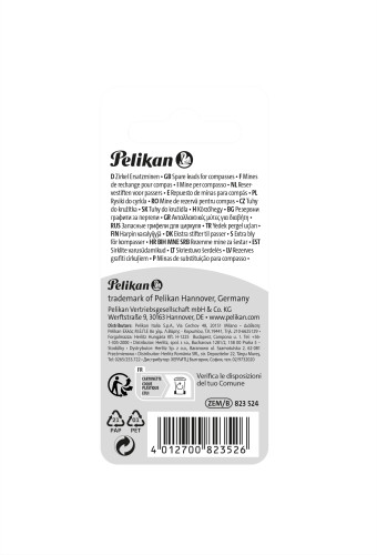 Pelikan Zirkelersatzminen passend für griffix Zirkel, Pelikan und herlitz Standard-Zirkel und zusätzlich für alle Zirkel mit 2mm Blei-Einsatz. 2x5 Stück auf Blisterkarte aus FSC Material, Blisterhaube aus Recyclingfolie.