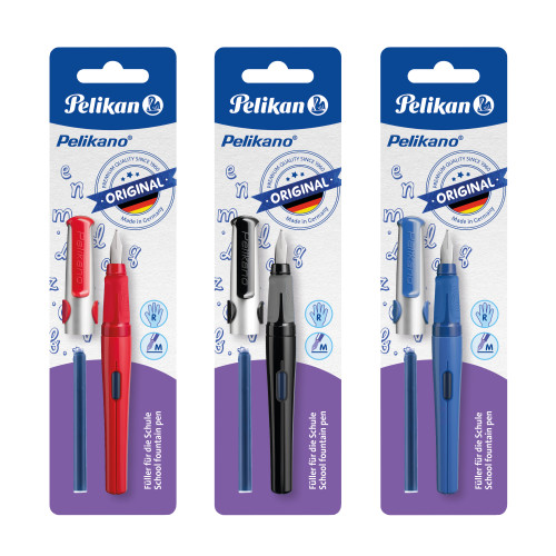 Pelikan Pelikano® Original Füller für Rechtshänder, farbig sortiert, Feder M, Blisterkarte | |