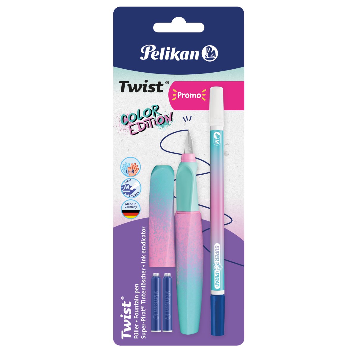 Artikelbeschreibung | Füller Twist® Color Edition P457 farbig sort. M +2TP Blister+Super-Pirat |