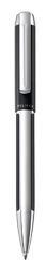Kugelschreiber mit Drehmechanik; Hochwertig eloxiertes Aluminium-Gehäuse mit matt und silber-glänzend veredelter Oberfläche; Robuster Clip durch federnd gelagerte Anbringung; Ausgestattet mit wechselbarer Großraum-Mine; Schwarze, nach ISO 12757-2 dokumentenechte Paste