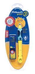 Zangengriff für die optimale Schreibhaltung. • Blisterverpackung mit Refills und Namenschild.