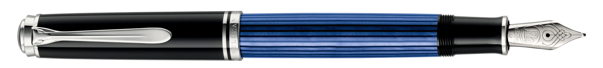 Souverän ist der Klassiker von Pelikan. Die Produktion des Souverän Mantels unterliegt einem aufwendigen Prozess, denn nach einer eigens für Pelikan entwickelten Rezeptur wird aus Baumwoll-Material in vielen Schritten ein gestreiftes Materialstück gefertigt, welches gebogen und anschließend mit einem Diamanten auf Kontur geschliffen wird. Die palladinierten Ringe an Füllgriff und Kappe werden mit höchster Präzision eingepasst, bevor das Schreibgerät auf Hochglanz poliert wird. Der leicht federnde, typische Pelikan Schnabelclip verleiht diesem hochwertigen Schreibgerät sein unverwechselbares Design. Der Kolbenfüllhalter Souverän M805 verfügt über eine 18-Karat komplett rhodinierte Goldfeder und ist in den Federbreiten EF, F, M und B erhältlich. Die B-Feder sorgt für einen breites Schriftbild und ist und ist besonders für Handschriften mit großen Schwüngen geeignet. |