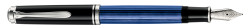 Souverän ist der Klassiker von Pelikan. Die Produktion des Souverän Mantels unterliegt einem aufwendigen Prozess, denn nach einer eigens für Pelikan entwickelten Rezeptur wird aus Baumwoll-Material in vielen Schritten ein gestreiftes Materialstück gefertigt, welches gebogen und anschließend mit einem Diamanten auf Kontur geschliffen wird. Die palladinierten Ringe an Füllgriff und Kappe werden mit höchster Präzision eingepasst, bevor das Schreibgerät auf Hochglanz poliert wird. Der leicht federnde, typische Pelikan Schnabelclip verleiht diesem hochwertigen Schreibgerät sein unverwechselbares Design. Der Kolbenfüllhalter Souverän M805 verfügt über eine 18-Karat komplett rhodinierte Goldfeder und ist in den Federbreiten EF, F, M und B erhältlich. Die M-Feder sorgt für einen medium-breites Schriftbild und ist besonders für Handschriften mit etwas größeren Schwüngen geeignet. |