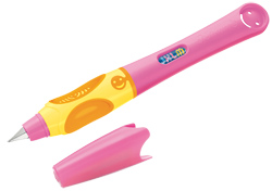 Zangengriff für die optimale Schreibhaltung. • Blisterverpackung mit Refills und Namenschild.