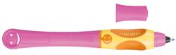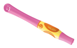 | Der Tintenschreiber ist die optimale Vorbereitung für das Schreiben mit dem Füller und die 3. Stufe des vierstufigen griffix® Schreiblernsystems. Der Tintenschreiber ist einfach zu handhaben, bringt aber schon viele Aspekte des Füllers mit: ähnliches Schriftbild, guter Reibungswiderstand auf dem Papier und flüssige Schreibbewegungen. Das ergonomische Design der griffix® Schreibgeräte fördert die richtige Handhaltung für natürliches und lockeres Schreiben in jeder Lernphase, denn alle Stifte – vom Wachsschreiber über den Bleistift und Tintenroller bis hin zum Schulfüller - sind optimal auf die individuelle Lernstufe des Kindes angepasst. Dank des einheitlichen Griffmulden-Konzepts muss das Kind bei dem aufeinander aufbauenden Schreiblernsystem die Handhaltung von Stufe zu Stufe nicht mehr ändern. Das Gute-Laune-Gesicht zeigt, dass der Stift richtig gehalten wird. griffix® unterstützt die Kinderhand damit optimal im gesamten Schreiblern-Prozess - von Anfang an. Mit griffix® macht das Schreibenlernen Spaß. |