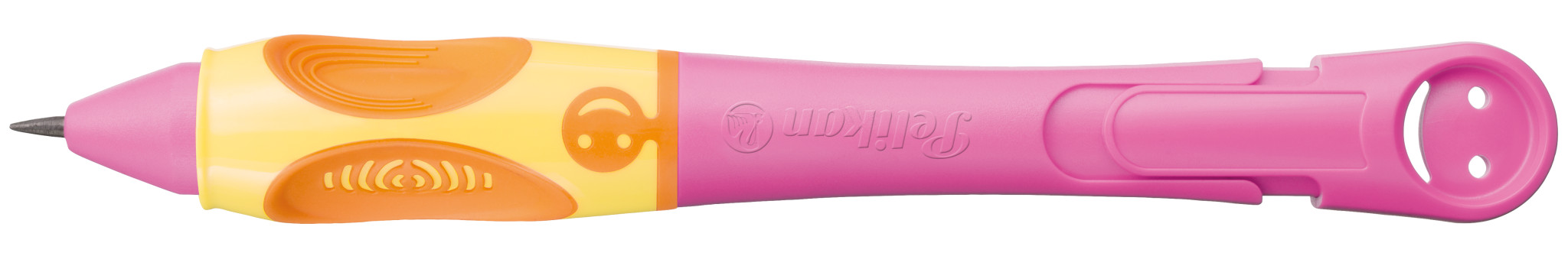 | Der griffix® Bleistift ist ein Druckbleistift und die 2. Stufe des vierstufigen griffix® Schreiblernsystems. Die weiche HB Mine trägt zu einem sauberen Schriftbild bei. Das Gute-Laune-Gesicht zeigt, dass der Stift richtig gehalten wird. Passend dazu bietet Pelikan als Zubehör griffix® Anspitzer und griffix® Radierer an. Das ergonomische Design der griffix® Schreibgeräte fördert die richtige Handhaltung für natürliches und lockeres Schreiben in jeder Lernphase, denn alle Stifte – vom Wachsschreiber über Bleistift und Tintenroller bis hin zum Schulfüller - sind optimal auf die individuelle Lernstufe des Kindes angepasst. Dank des einheitlichen Griffmulden-Konzepts (Zangengriff) muss bei dem aufeinander aufbauenden Schreiblernsystem die Handhaltung von Stufe zu Stufe nicht mehr verändert werden. griffix® unterstützt die Kinderhand damit optimal im gesamten Schreiblern-Prozess - von Anfang an. Mit griffix® macht das Schreibenlernen Spaß. |