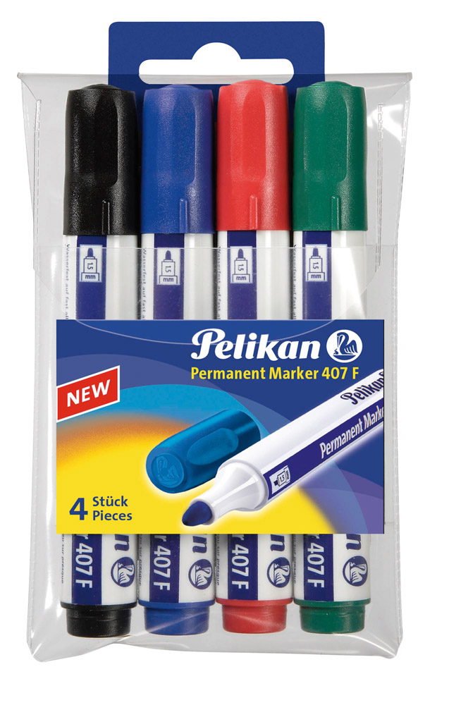 Pelikan Permanent Marker 407 Etui mit 4 Stück in Schwarz, Blau, Rot, Grün