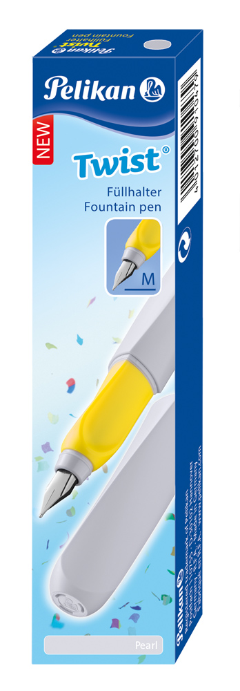 Pelikan Füller Twist Feder M, Pearl (Blaugrau/Gelb), universell für Rechts- und Linkshänder