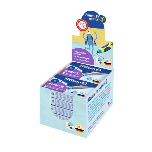 Kernvorteile | Tintenschreiber Patrone für Pelikan griffix®; Löschbar; Mit Faserspitze; Tinte auf Wasserbasis; Aus den meisten Textilien auswaschbar; Farbe: Blau; Inhalt: Inhalt: 5 Tintenpatronen; Made in Germany |
